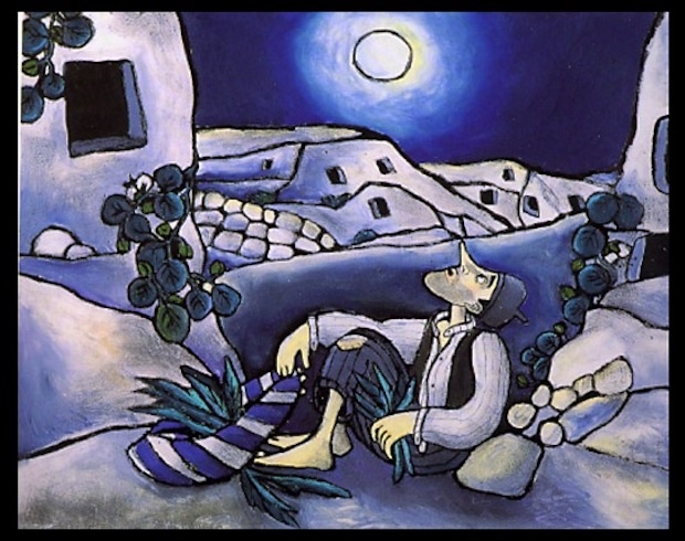 “Passando vicino ad un pozzo, Giufà vide la Luna riflessa e pensando vi fosse caduta dentro decise di salvarla. Prese un secchio, lo legò ad una corda e lo buttò nel pozzo. Quando la Luna fu riflessa nel secchio, Giufà cominciò a tirare con forza e tirando finì per spezzare la corda cadendo all’indietro a gambe all’aria. E così per cercare un appiglio, nel rialzarsi vide nel cielo la Luna. La sua soddisfazione fu grande che disse a se stesso: “Sono caduto per terra a mi sono ammaccato, ma, in compenso, ho salvato la Luna”