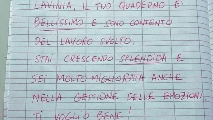 I post pubblicati sui social hanno fatto il giro del web: “Sono contento del lavoro svolto, sei migliorata nella gestione delle emozioni”, ha scritto così per la piccola Lavinia. Sul quaderno di Serena, invece, ha scritto: “A volte ho difficoltà a capire se sei felice o triste, se sei d’accordo ti chiederò più spesso come stai”.