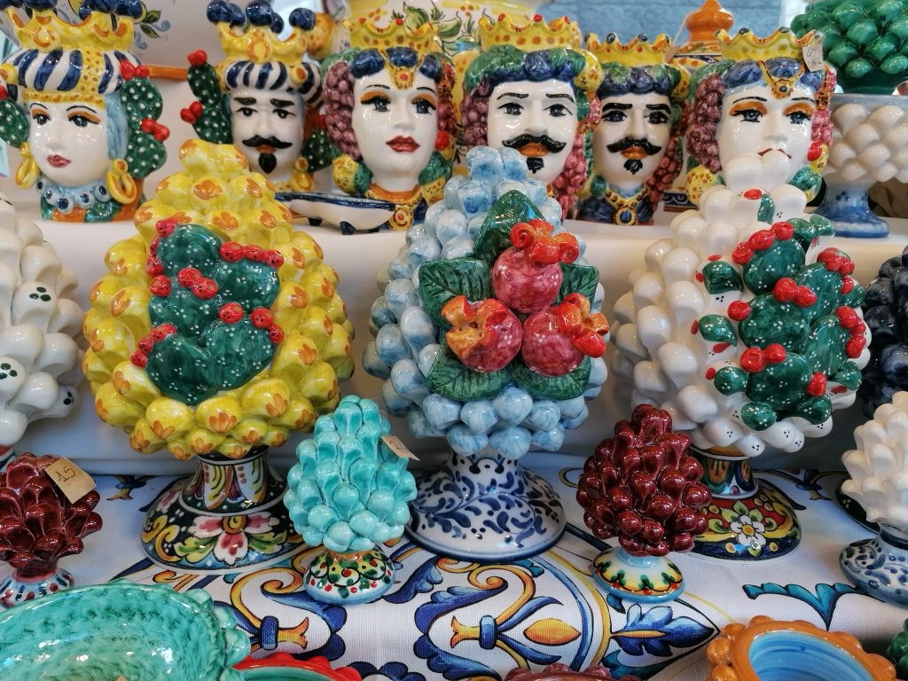 I simboli più significativi sono le pigne di ceramica, simbolo di buon auspicio che si trova nella maggior parte delle case siciliane, anche come decorazioni esterne in giardini o cancelli d’ingresso delle abitazioni e il cui significato simbolo è salute e vitalità; un secondo simbolo interessante è rappresentato dalle teste di moro, l’elefante catanese che, secondo le tradizioni, avrebbe aiutato la popolazione nel cacciare animali selvatici durante la costruzione della città; dall’elefante si passa alla tartaruga, simbolo di lunga e serena vita; altro emblema scaramantico è la Trinacria, in grado di allontanare il malocchio; infine, la testa di Medusa che riesce a scacciare via ogni male.