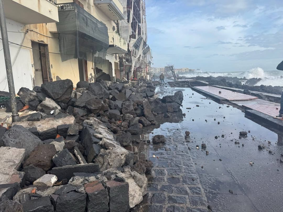 Particolarmente colpita la costa. Ad Aci Trezza le onde, sospinte dal vento, hanno superato il lungomare invadendo strade e attività commerciali affacciate sul porto. Diversi locali hanno riportato infiltrazioni d’acqua, mentre alcune imbarcazioni da pesca sono state danneggiate dopo aver urtato contro gli scogli o aver spezzato gli ormeggi. La carreggiata è rimasta a lungo coperta da sabbia, alghe e detriti.