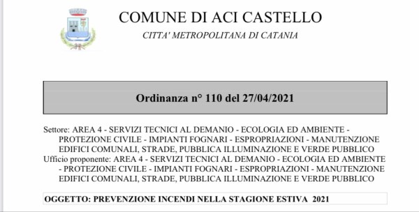 ACI CASTELLO: MISURE PER PREVENIRE GLI INCENDI NELLA STAGIONE ESTIVA 2021