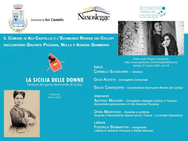 Il Festival del genio femminile di Sicilia approda ad Aci Castello Sabato 27 Marzo 2021. Il Comune di Aci Castello partecipa alla prima edizione del “Festival del genio femminile di Sicilia”, oraganizzato da Fulvia Toscano e Marinella Fiume all'interno di Naxoslegge, che dall’8 al 31 marzo 2021 racconta delle numerose donne della nostra Isola che... Continua a leggere →