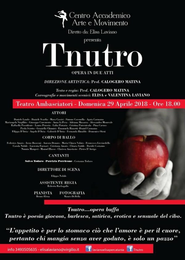 Lo spettacolo TNUTRO, che verrà messo in scena il 29 Aprile alle 18:00 al Teatro Ambasciatori di Catania, nasce da una semplice parola che abbiamo sentito tante volte nella nostra vita: “mangiasti”? La prima persona che ci viene in mente è certamente la mamma. Chi meglio di una madre si preoccupa del nutrimento del proprio... Continua a leggere →