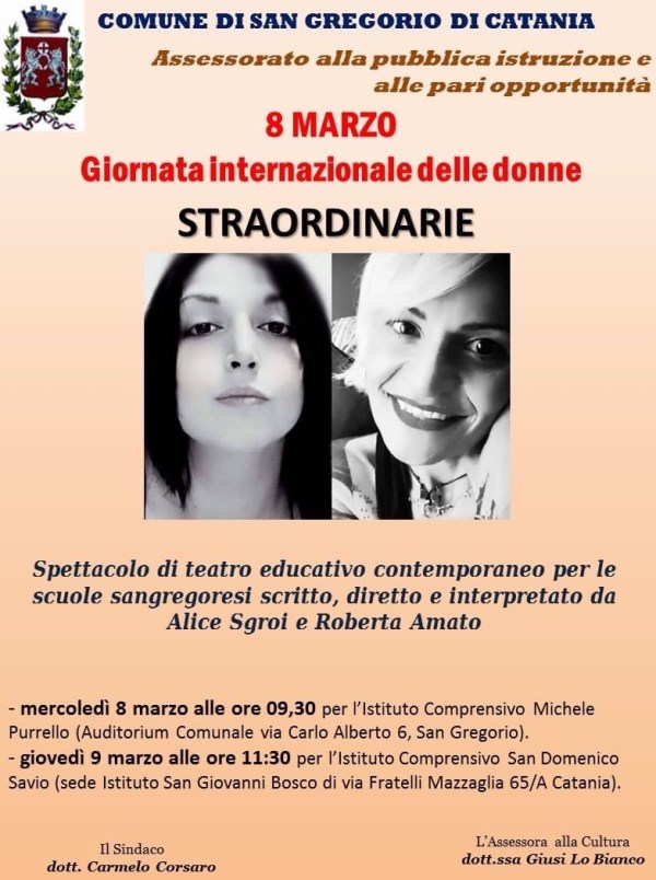 “STRAORDINARIE” Donne che troverai sempre nei libri di storia. L’8 marzo nelle scuole sangregoresi