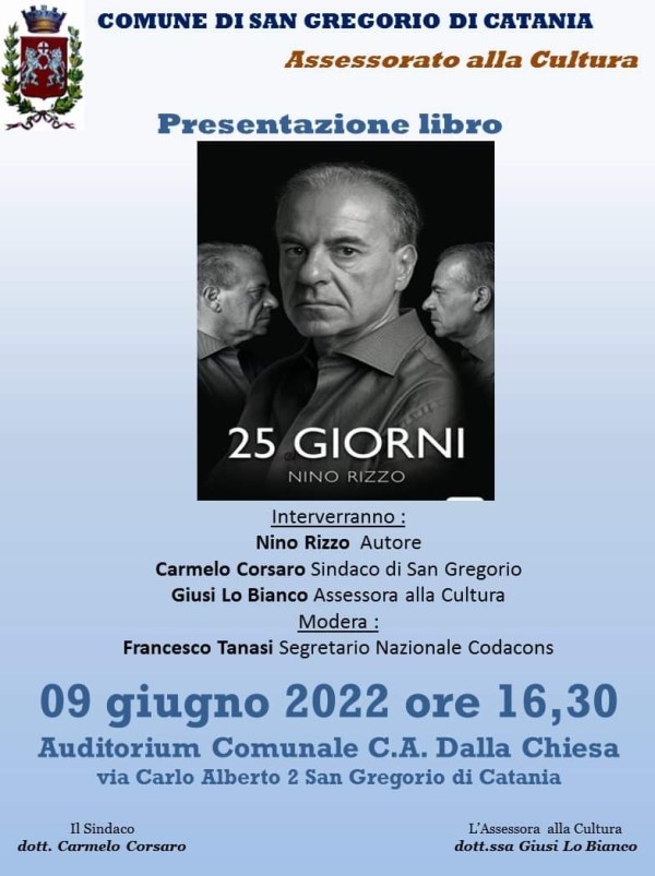 San Gregorio, “25 GIORNI” Presentazione del libro di Nino Rizzo, giovedì 9 giugno