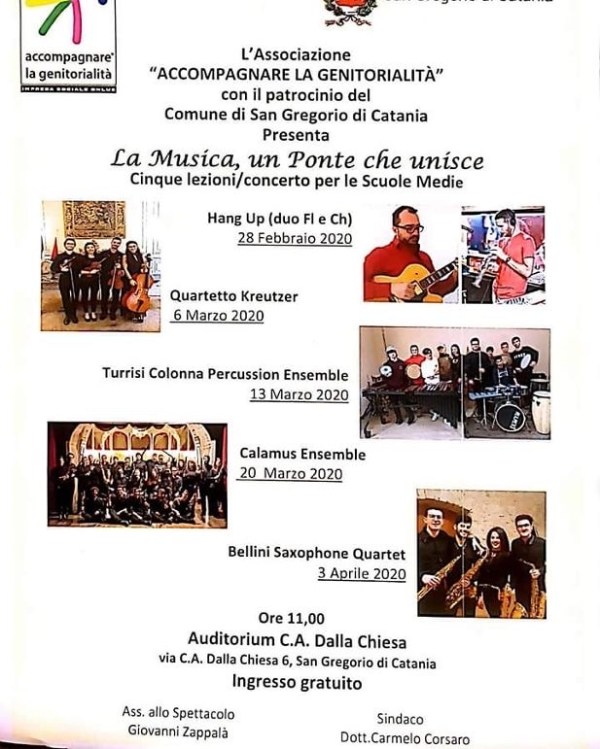 “La musica un ponte che unisce”. Questo il titolo degli e eventi musicali organizzati dalla Associazione “Accompagnare la genitorialità” e patrocinati dal Comune di San Gregorio, assessorato allo Spettacolo diretto da Giovanni Zappalà, sotto la direzione artistica della prof. Rosaria Guglielmino, ideatrice e promotrice del progetto. L’associazione “Accompagnare alla genitorialità” dedica grande attenzione alle scuole... Continua a leggere →