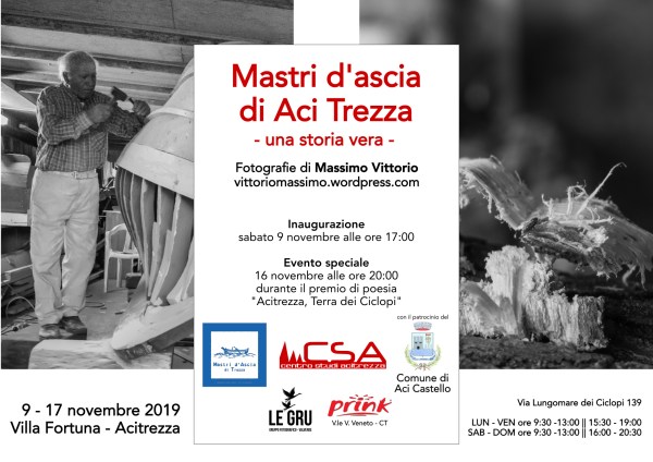 Questo sabato 9 novembre, alle ore 17.00 presso Villa Fortuna ad Acitrezza, verrà inaugurata la mostra fotografica di Massimo Vittorio che racconta attraverso i suoi scatti in bianco e nero l’appassionante storia dei mastri d’ascia ed in particolar modo quella della storica famiglia dei Rodolico. Un progetto fotografico che rende omaggio a chi, seppur dovendo... Continua a leggere →
