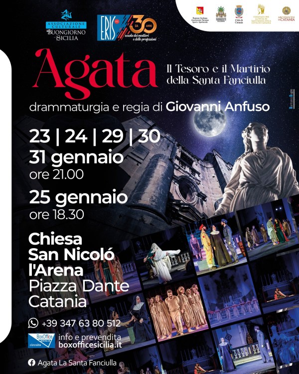 Oggi l’ultima replica dello spettacolo di Giovanni Anfuso che celebra la storia della Santa patrona e rilancia un messaggio di pace contro i conflitti del nostro tempo. Ormai un classico delle festività agatine, lo spettacolo “Agata la Santa fanciulla” ha debuttato lo scorso 22 gennaio presso la chiesa di San Nicolò l’Arena tra... Continua a leggere →