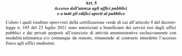 A seguito dell’ordinanza urgente emessa ieri 13 agosto dal Presidente della Regione Siciliana, i soggetti sprovvisti di certificazione verde non possono accedere fisicamente agli uffici pubblici e a tutti gli edifici aperti al pubblico. Chi non possiede la certificazione verde potrà beneficiare dei servizi resi dagli uffici pubblici e dai privati preposti all’esercizio di attività... Continua a leggere →