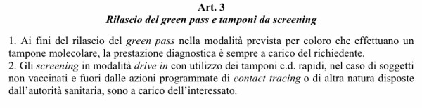 A seguito dell’ordinanza urgente emessa ieri 13 agosto dal Presidente della Regione Siciliana, nella quale viene specificato che i tamponi rapidi per i soggetti non vaccinati sono a carico dell’interessato, sono sospesi i tamponi gratuiti presso la sede di Via Napoli 20 (Cannizzaro).Il Sindaco Carmelo Scandurra, dopo essersi confrontato con il Commissario per l’Emergenza COVID,... Continua a leggere →